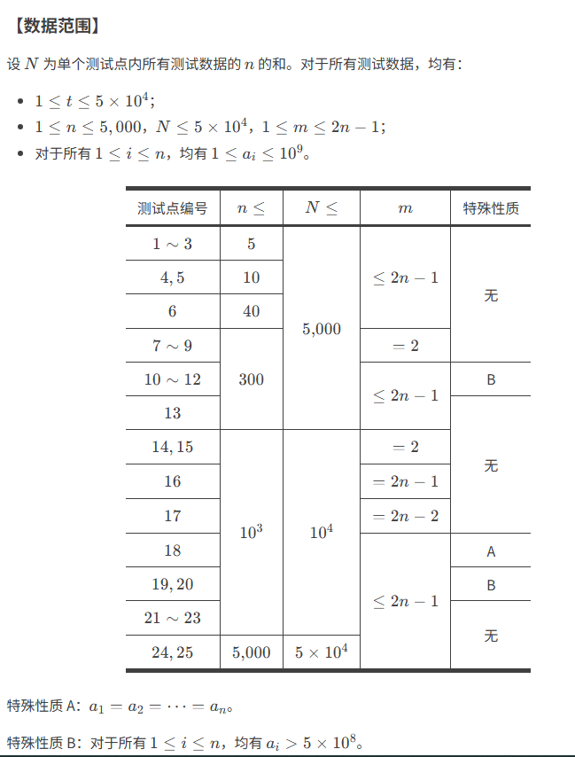 输入的第一行包含两个非负整数 c, t,分别表示测试点编号与测试数据组数。c=0 表示该测试点为样例。